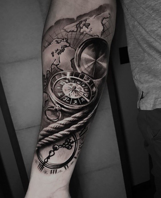 Hoci realizmus je pomerne svieži a moderný štýl, často zobrazuje obrázky a predmety, ktoré sú v kultúre tetovania považované za tradičné. Jednou z nich sú klasické navigačné zariadenia. Môžu to byť mapy, kompasy, ďalekohľady alebo hodinky. Ich význam môže byť rôznorodý a viacvrstvový, ktorých chápanie závisí od pozorovateľa.