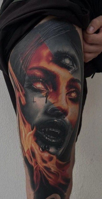 - Strašidelné a krvavé scény pre milovníkov hororu. Vďaka tomuto štýlu tetovania filmové a komiksové postavičky ožívajú priamo na tele pomocou neuveriteľného fotorealizmu. Osobitnú pozornosť si zaslúži štylizácia škrabancov, modrín, efekt roztrhaného mäsa atď.