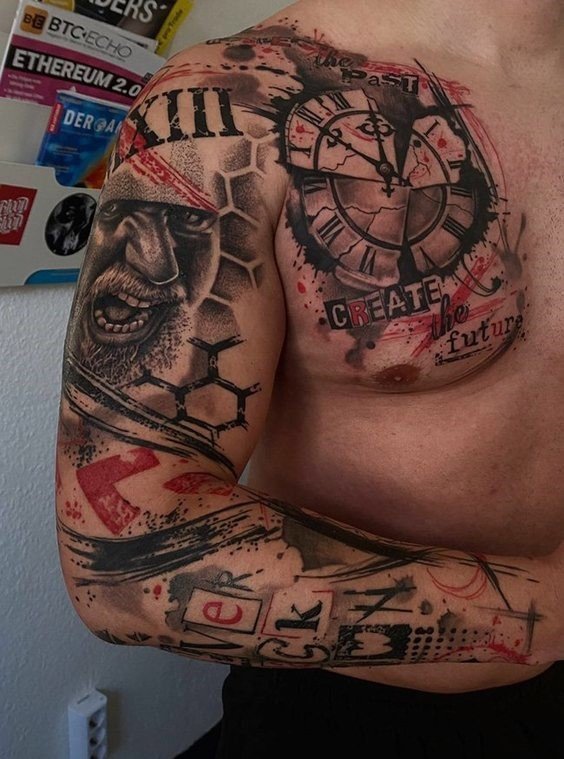 Trash polka je jedinečný štýl, ktorý je kolážou emócií a symbolov. Každé tetovanie vytvára skutočnú dramatickú scénu. A vďaka flexibilite tohto smeru sú kresby schopné odrážať akékoľvek abstrakcie alebo koncepty. Nejde len o body art, ale o skutočnú rebelskú reč tela, ktorá rozpráva osobný príbeh a zároveň vyjadruje preferencie a hodnoty človeka.