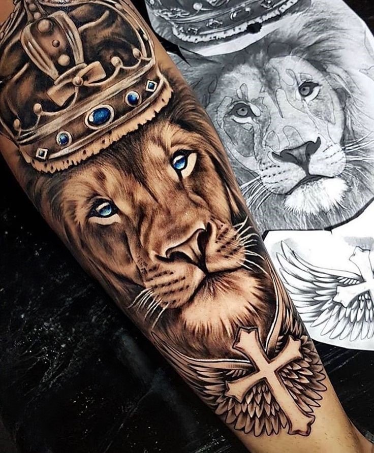 - Pre mužov: Muži často volia masívne a výrazné dizajny, ktoré zdôrazňujú silu a sebadôveru. Obľúbenými prvkami sú levy, meče alebo štíty, ktoré dodávajú tetovaniu drsný vzhľad.