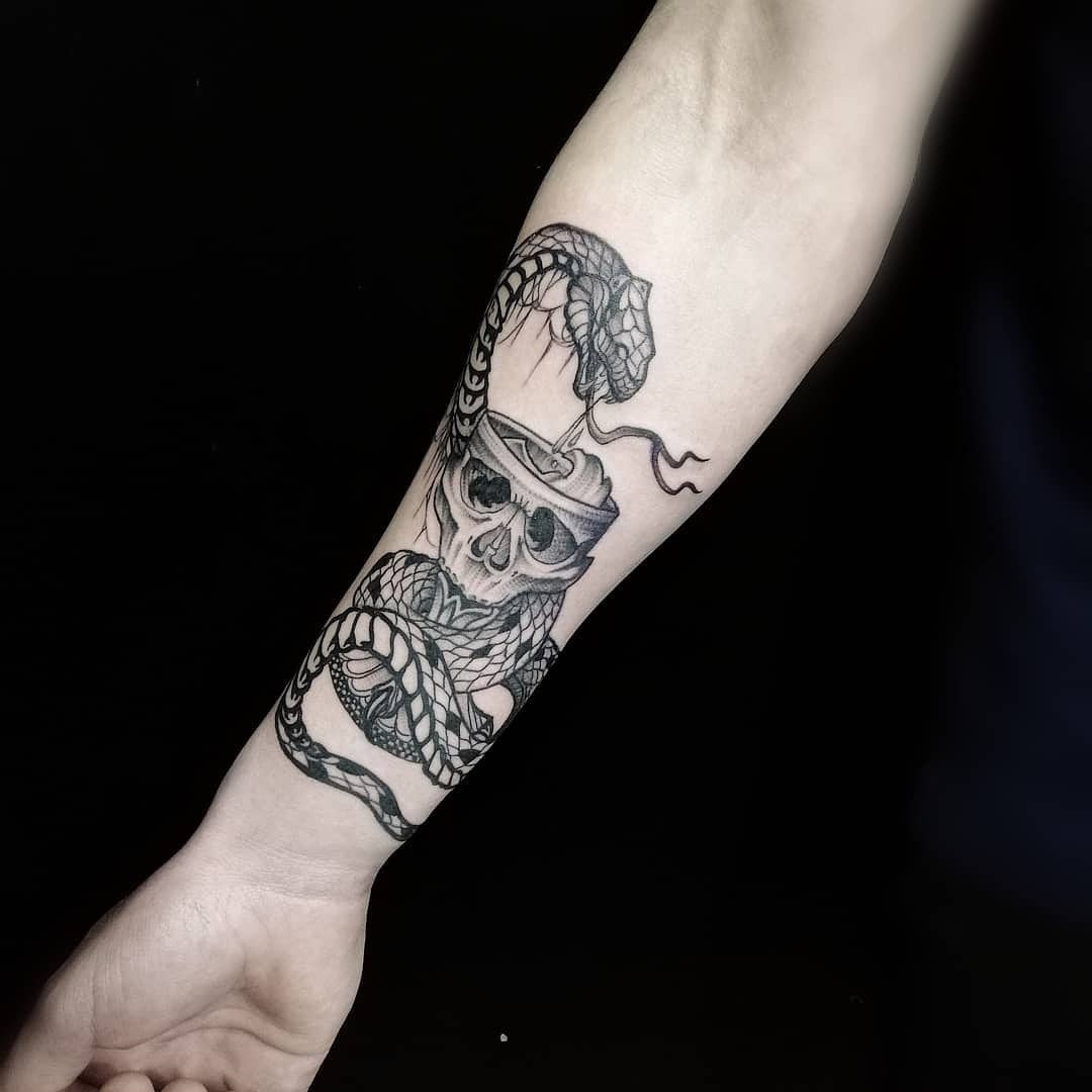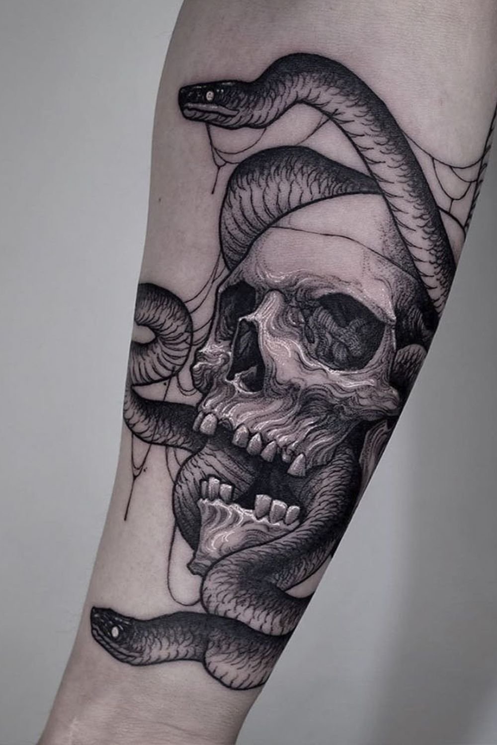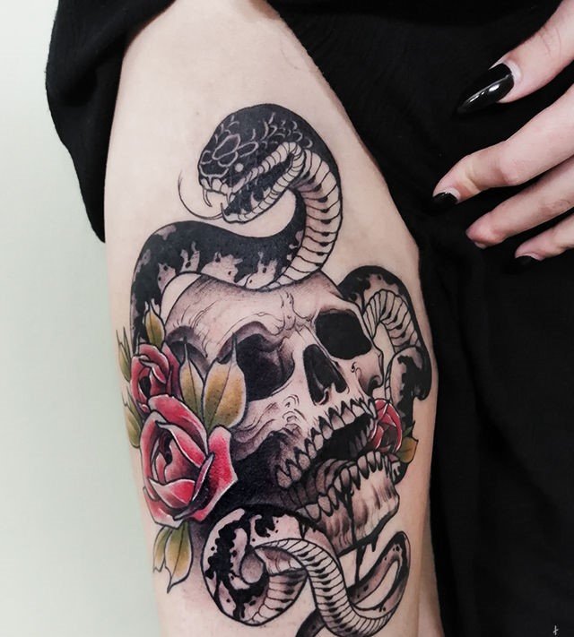 - Had: je to symbol chladnej mysle, premyslenosti činov, často až chladnokrvné sklony. V závislosti od štýlu tetovania môže mať had a lebka v kombinácii zlovestný význam a symbolizovať smrť.