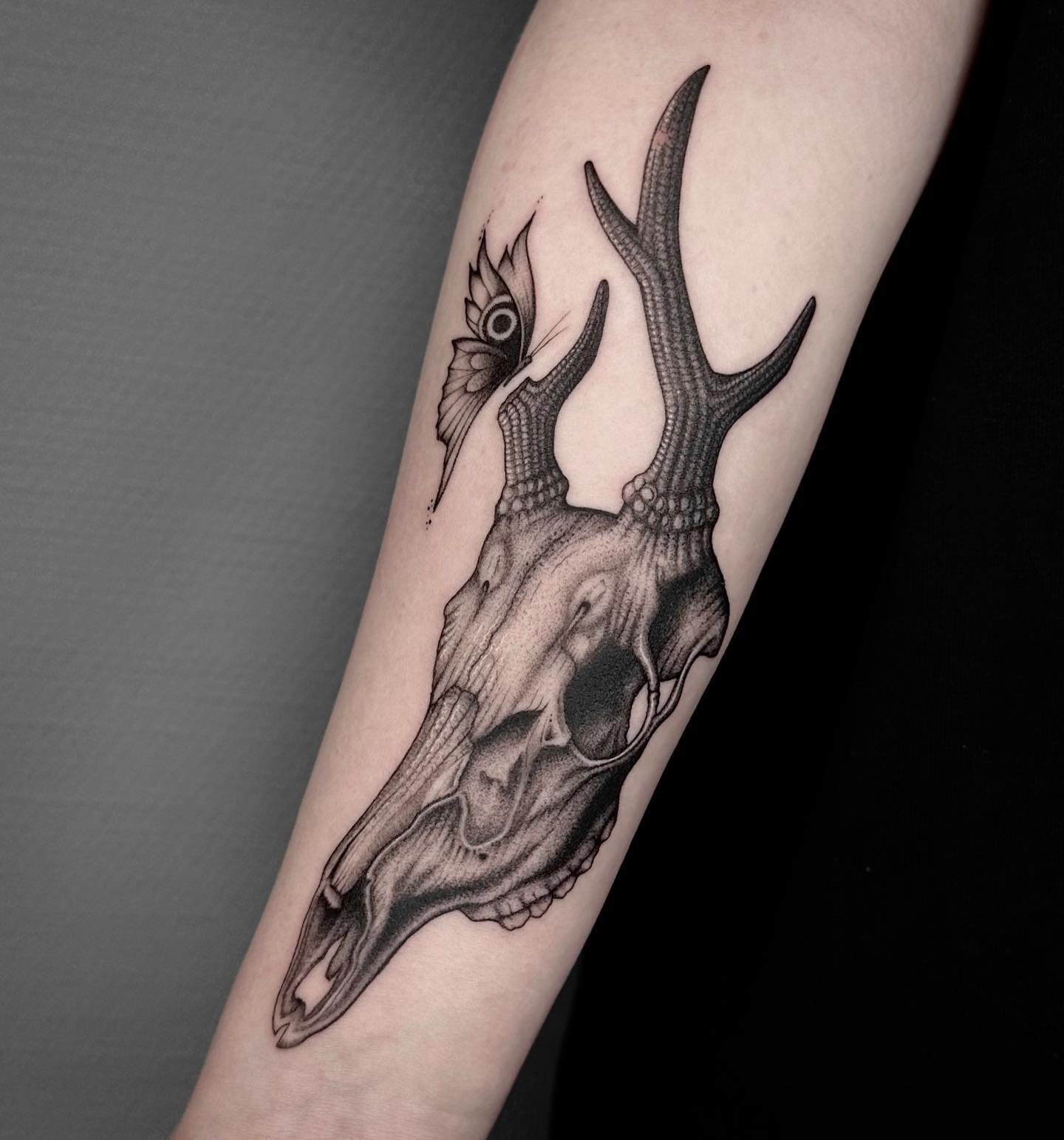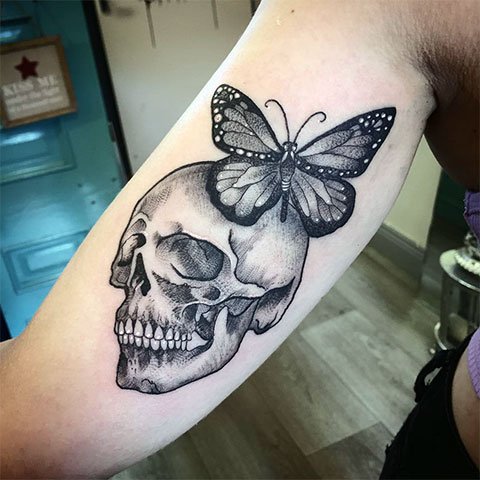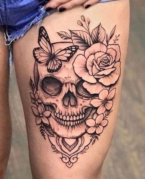 - Motýľ: Ako symbol premeny a znovuzrodenia môže motýľ dodať tetovaniu lebky nový význam a ukázať, že zmena a rast sú v živote dôležité.