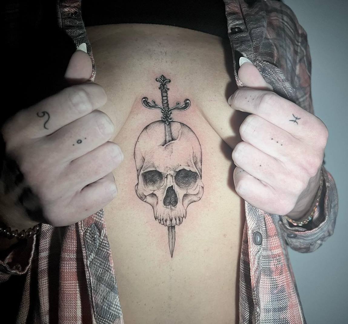 Ďalšou populárnou možnosťou (takpovediac široko známou v úzkych kruhoch) je aplikácia tetovania s lebkou v rebrách. Oblasť je dosť citlivá, preto sa málokedy vyberá ako miesto na tetovanie, no zároveň sa nájde veľa odvážlivcov, najmä medzi tými, ktorí si ako dizajn zvolili tetovanie lebky.