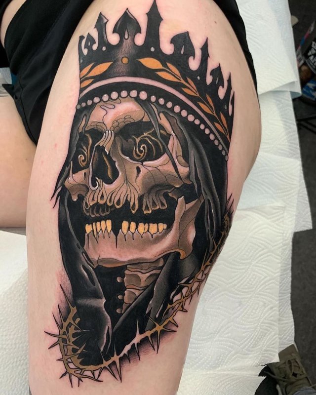 - Koruna: Obraz koruny na lebke môže naznačovať moc, silu alebo dokonca osud. Môže symbolizovať túžbu byť lídrom alebo vyhľadávanie kontroly nad vlastným životom.