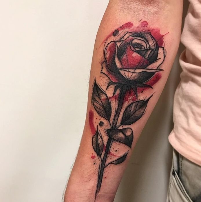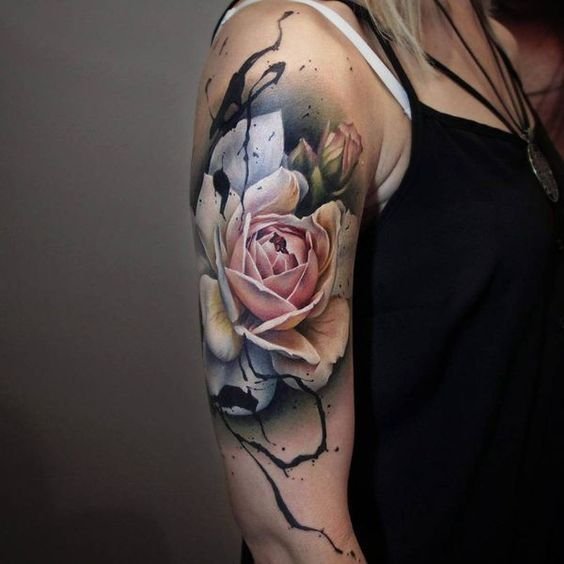 - Nová škola (New School): Tento štýl znamená modernejší prístup k tetovaniu. Ruže v tomto štýle môžu mať abstraktnejšie tvary, kombinácie pestrých farieb a hravých dizajnov.