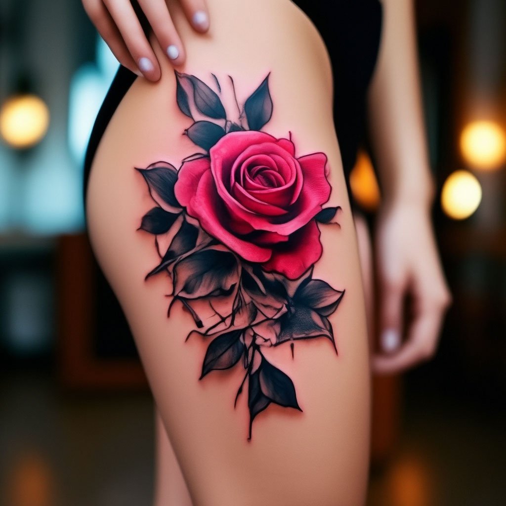 - Estetika a krása: Tetovanie vo forme ruže môže byť vykonané v rôznych štýloch a farbách, od realistických po štylizované alebo v grafickom štýle, čím sa vytvárajú úžasné obrázky.