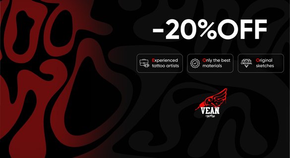 - Získaj bezplatné tetovanie do veľkosti 7 cm podľa jedinečného návrhu v jednom zo štúdií VEAN.