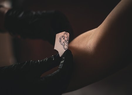 - Pred začiatkom zákroku sa pokožka dôkladne čistí a odmasťuje, aby sa zabezpečilo lepšie prenikanie pigmentu.